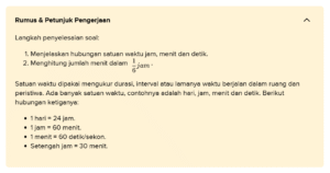- Untuk konsep dasar “1 jam = 60 menit”, juga dijelaskan secara rinci dalam Modul Ajar Matematika – Waktu dan Durasi (Jam, Menit, Detik) oleh KemdikbudKur2021.