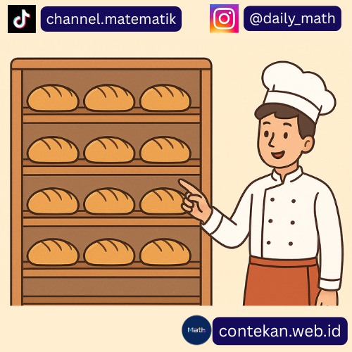 Seorang pembeli melihat ada 4 rak roti, dan setiap rak berisi 6 roti. Untuk mengetahui jumlah seluruh roti, tidak perlu menghitung satu per satu, melainkan cukup menggunakan perkalian: