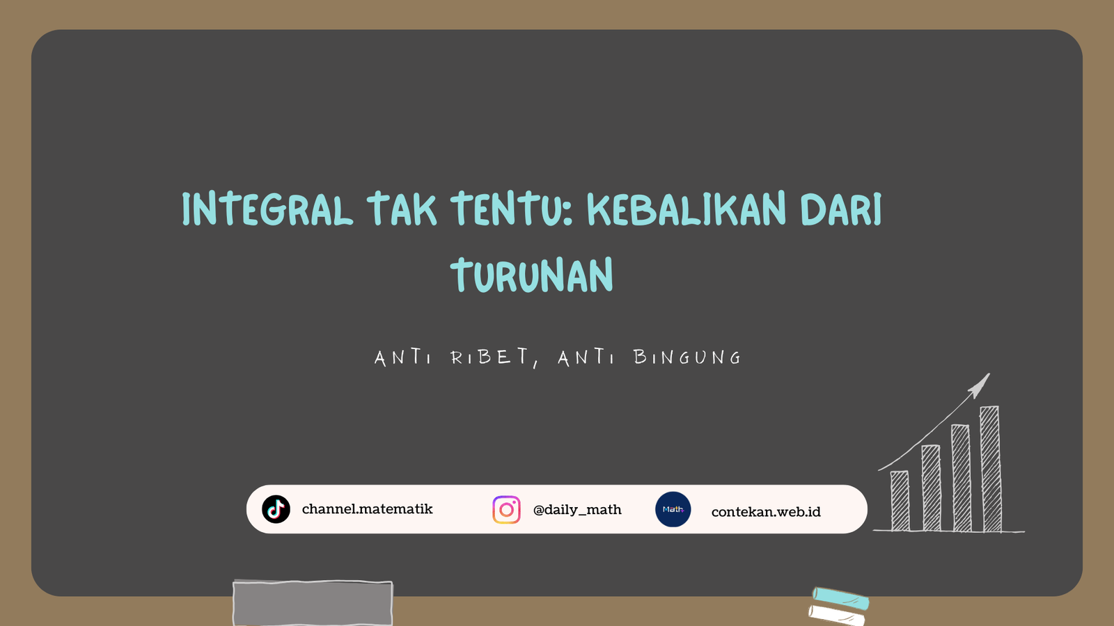 Integral tak tentu adalah kebalikan dari turunan yang hasilnya berupa fungsi + konstanta.