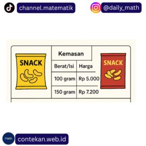- Kemasan B: Rp 7.200 ÷ 150 gram = Rp 48 per gram