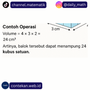 Volume balok dapat dipahami sebagai banyaknya kubus satuan yang dapat mengisi ruang di dalam balok tersebut. Kubus satuan biasanya memiliki ukuran sisi 1 cm × 1 cm × 1 cm. Dengan menggunakan metode ini, siswa lebih mudah memahami bahwa volume bukan hanya ukuran panjang atau luas, tetapi ukuran isi suatu bangun ruang.