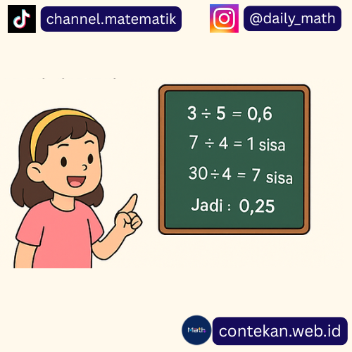 • Bila penyebutnya bilangan lain (misalnya 3, 7, 9), pembagiannya bisa menghasilkan desimal tak hingga atau berulang (bukan desimal “sederhana”).