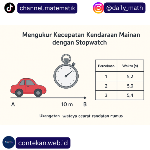 Mengukur kecepatan kendaraan mainan menggunakan stopwatch adalah cara sederhana namun efektif untuk memahami konsep kecepatan dalam kehidupan sehari-hari. Dengan melakukan beberapa percobaan, mencatat data, dan menghitung kecepatan, siswa dapat memahami hubungan antara jarak, waktu, dan kecepatan sesuai kompetensi dasar matematika.