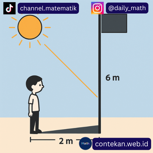 Misalkan ada sebuah tiang bendera setinggi 6 meter. Saat matahari terbit, panjang bayangan seorang anak dengan tinggi 1,5 meter adalah 2 meter. Berapakah panjang bayangan tiang bendera?