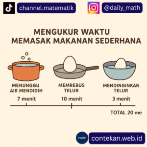Artinya, untuk memasak telur rebus sederhana dibutuhkan 20 menit secara keseluruhan.