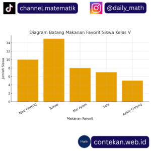 Dalam kehidupan sehari-hari, kita sering menemukan informasi dalam bentuk data. Salah satunya adalah data tentang makanan favorit teman-teman di kelas. Data ini bisa dikumpulkan, dicatat, lalu disajikan dalam bentuk diagram batang agar lebih mudah dipahami.