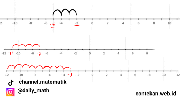 (Jika suhu -5°C naik 3°C, hasilnya menjadi -2°C)