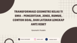 Memahami Transformasi Geometri: Cara Cepat Menguasai Perubahan Posisi Bangun di Bidang Kartesius Banyak siswa merasa materi transformasi geometri itu “ribet” karena berhubungan dengan koordinat dan rumus. Padahal, kalau dipahami konsepnya, materi ini justru sangat logis dan mudah dipelajari. Transformasi geometri adalah salah satu materi penting di kelas 11 SMA yang sering muncul di ujian. Selain … Continue reading Transformasi Geometri Kelas 11 SMA – Pengertian, Jenis, Rumus, Contoh Soal, dan Latihan Lengkap Anti Ribet